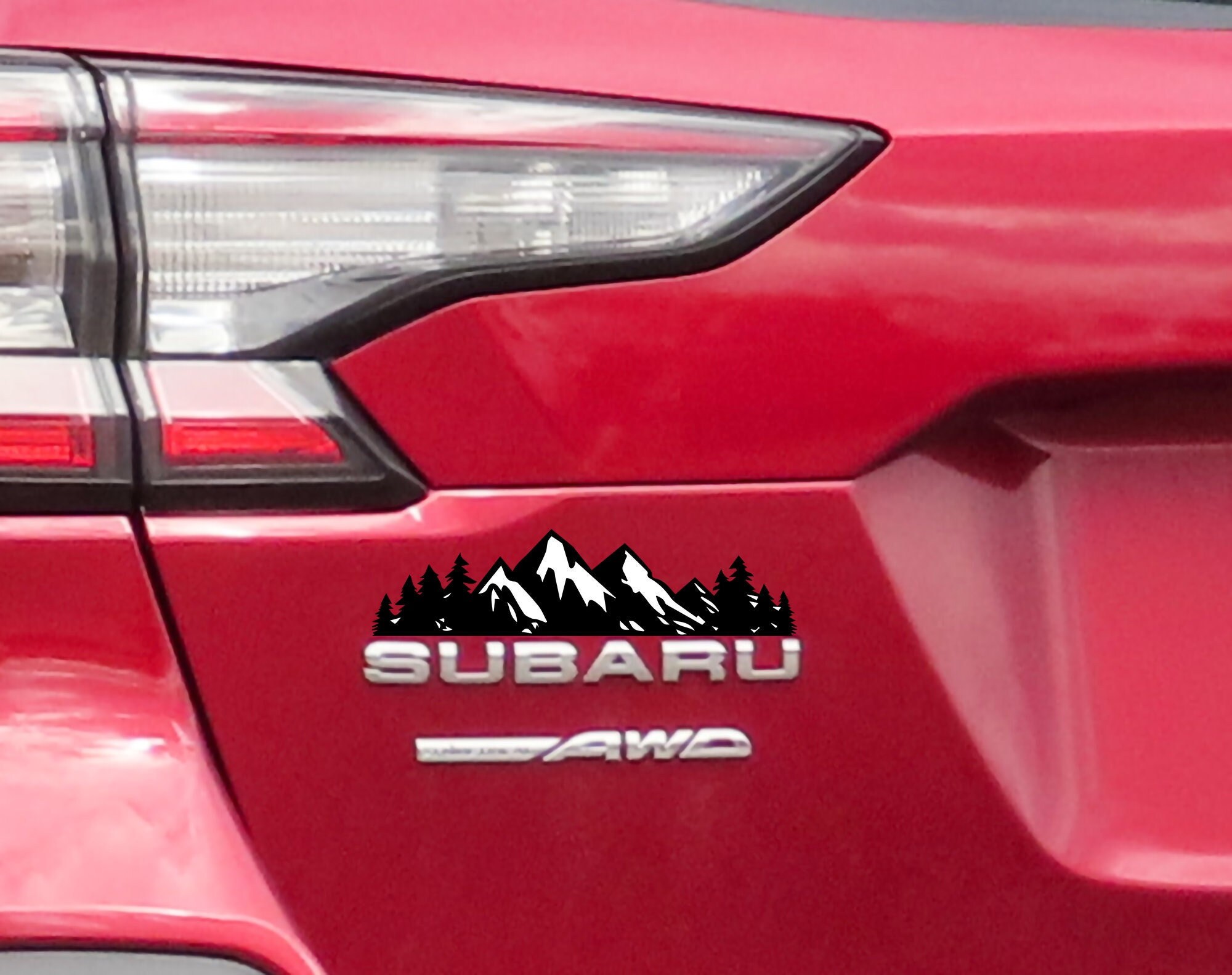 7 Printed Snow Capped Trees and Mountain Decal, Car Emblem Graphic
