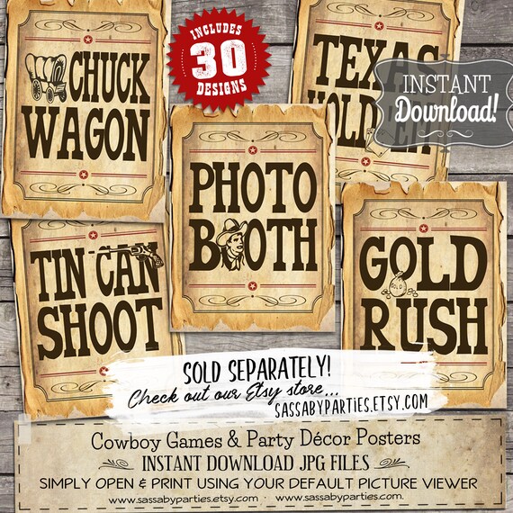 Cowboy Drink Bottle Labels INSTANT DOWNLOAD Wild West Rodeo